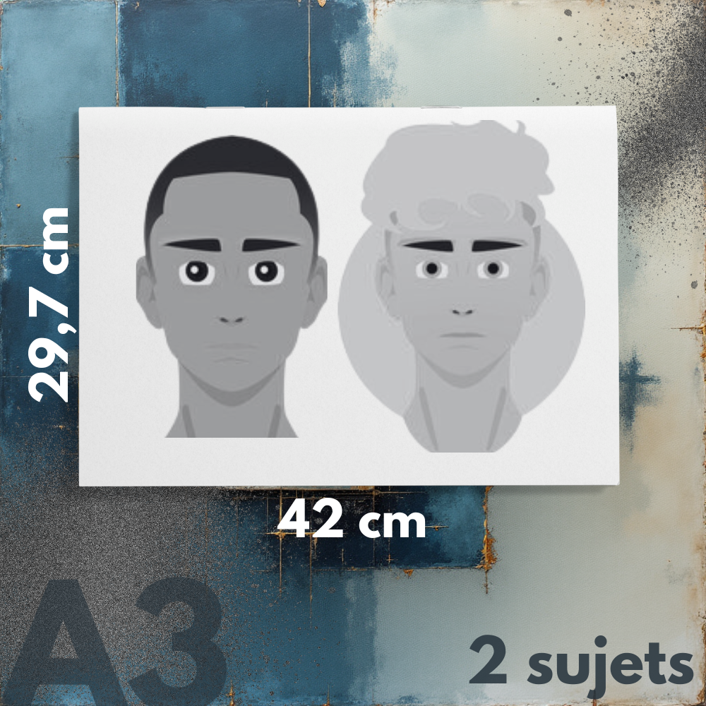 Portrait aux crayons graphites (gris): A3 – 2 sujets